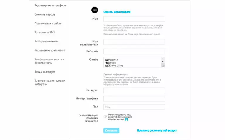 Временное удаление Instagram